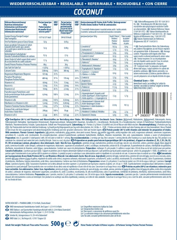 Eiweiss in seiner leckersten Form! inkospor® PRO 80® der Eiweissshake mit 80% Protein und 100% Geschmack! Erlebe mit jedem Schluck inkospor® Active PRO 80® die unschlagbare INKO-Qualität sowie die einzigartige Cremigkeit. 80% 4-Komponenten-Protein, bis zu 4650 mg BCAA pro Portion; Fettfrei, zuckerfrei; 9 Vitamine, 3 Mineralstoffe.