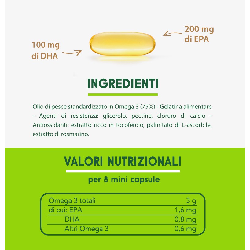 EnerZona Omega 3 RX è ottenuto per distillazione molecolare. La percentuale di acidi grassi Omega-3 EPA + DHA è del 60%, mentre la quantità totale di acidi grassi Omega-3 è del 75%. Si ottiene così la massima efficienza del prodotto. Dopo l'ingestione non c'è retrogusto di pesce. La qualità è certificata da IFOS (International Fish Oil Standard). 1 capsula contiene: 200mg di EPA, 100mg di DHA e 75mg di Omega 3 aggiuntivi
