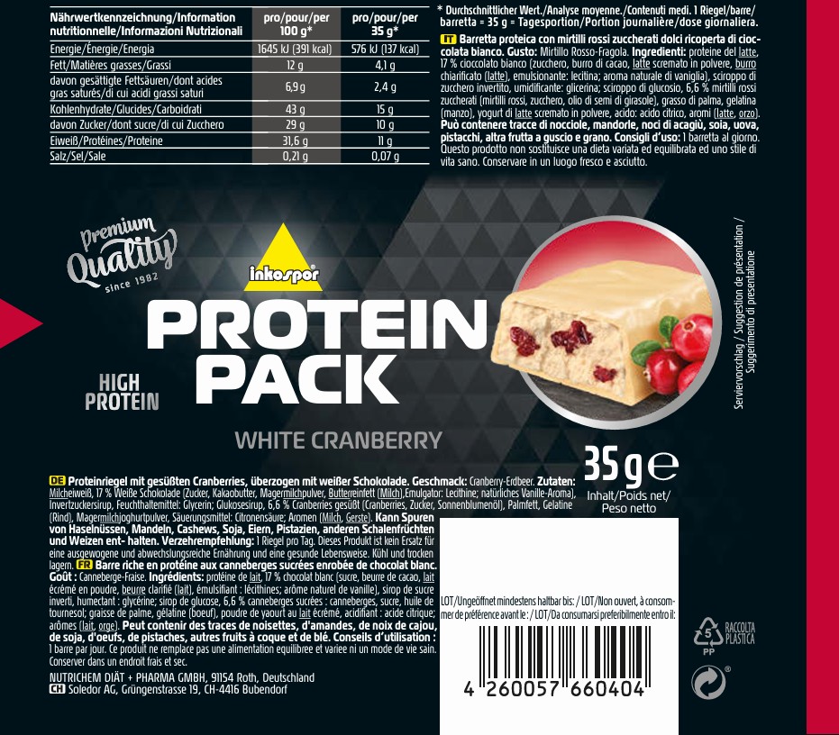 INKOSPOR Protein Pack-Riegel White Cranberry, 24 x 35 g